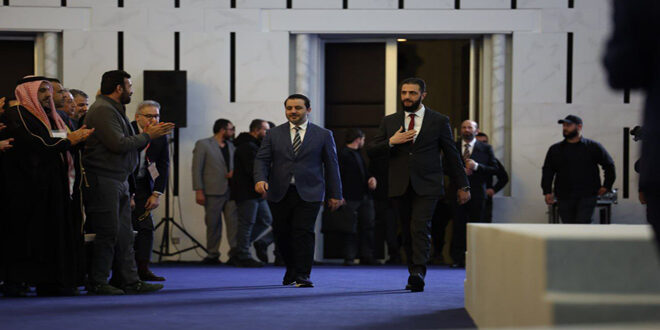 Участники приветствовали президента Аш-Шараа и министра иностранных дел по завершении Конференции по национальному диалогу