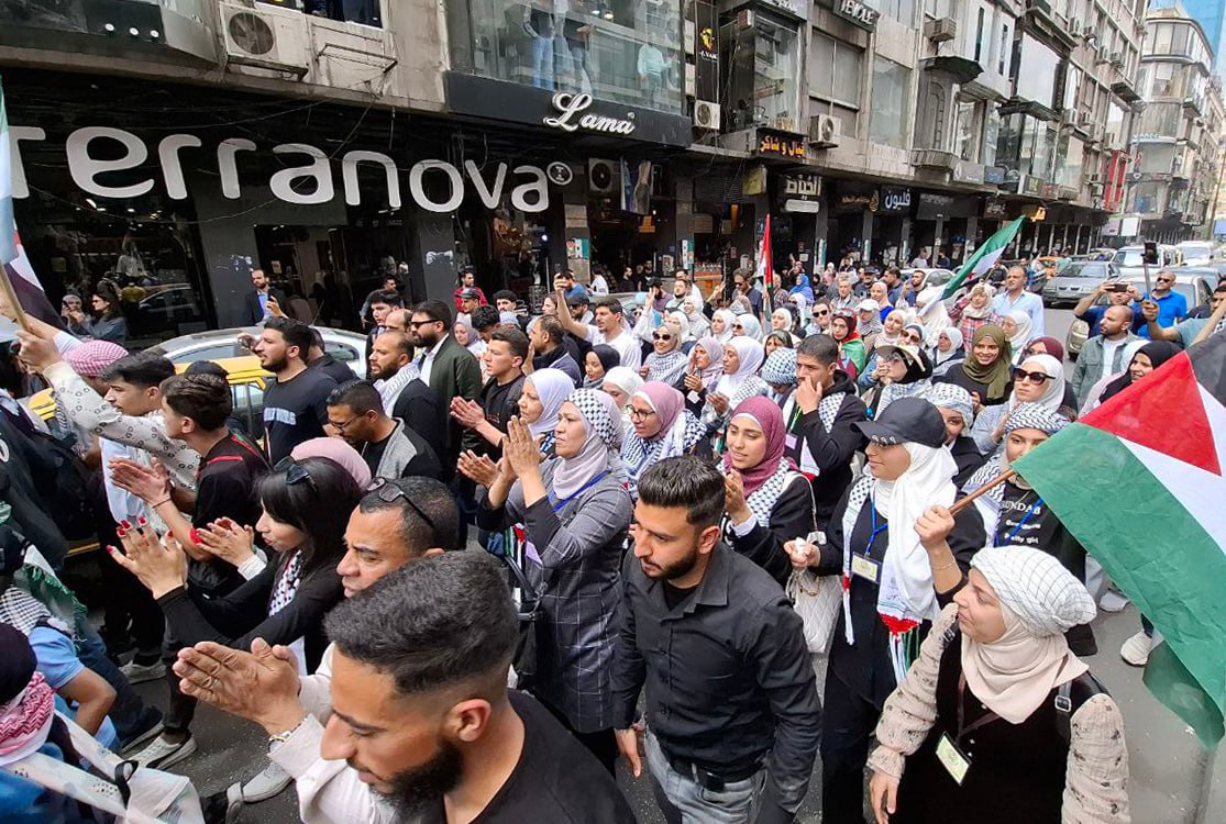 В Дамаске прошла народная демонстрация в поддержку Газы и прекращения там геноцидной войны, а также в знак несогласия с неоднократными нападениями Израиля на Сирию и в честь погибших в Дараа в результате бомбардировки израильскими оккупационными войсками западной части провинции.