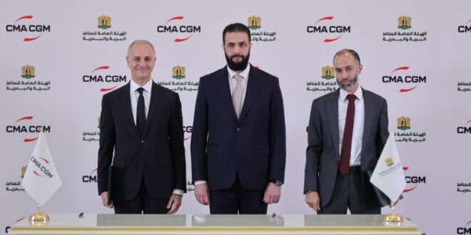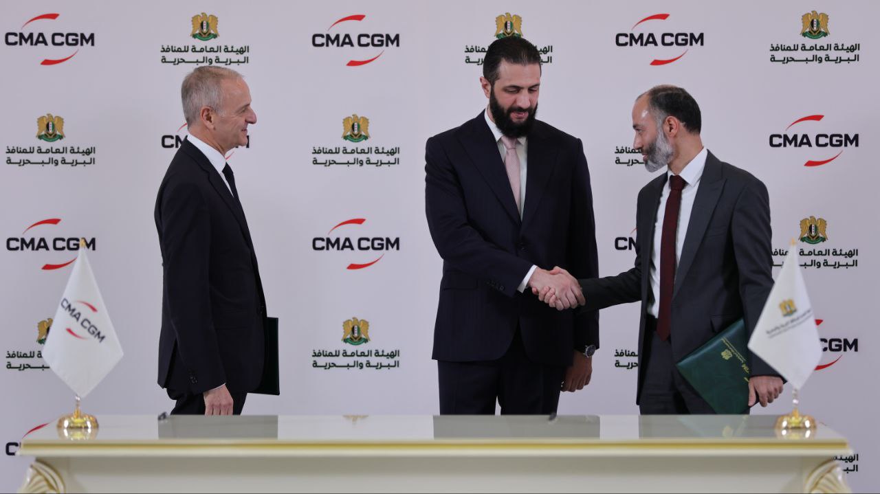 В присутствии президента Ахмада Аш-Шараа в Народном дворце в Дамаске Главное управление пограничных и морских пунктов подписало соглашение с французской компанией CMA CGM.