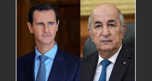 Дамаск – САНА 03-04-2023 Президент САР Башшар Аль-Асад обсудил с президентом Алжира Абдель-Маджидом Теббуном ключевые события на арабской арене, особенно в свете визитов ряда арабских официальных лиц в Сирию, а … Read More »