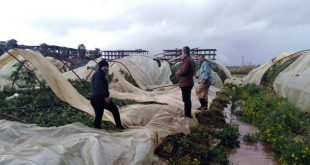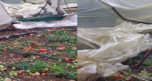 طرطوس-سانا أدت العاصفة والأحوال الجوية التي شهدتها محافظة طرطوس فجر اليوم إلى أضرار كبيرة في الزراعات المحمية