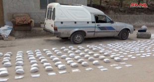 ريف دمشق-سانا خلال متابعتها الأمنية الدقيقة لعمليات نقل وتهريب المواد المخدرة ضبطت الجهات المختصة سيارة محملة بكمية كبيرة من المواد المخدرة معدة للتهريب عبر بلدة سرغايا بريف دمشق الشمالي. وذكر مصدر في الجهات المختصة في تصريح لمراسل سانا أن “المهربين …