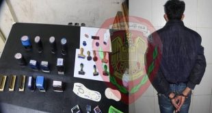 دمشق-سانا ألقى فرع الأمن الجنائي في دمشق القبض على مزور وثائق قضائية شرعية منسوبة لعدلية ريف دمشق ومحاكمها الشرعية وضبط بحوزته عدة أختام مزورة. وذكرت وزارة الداخلية في بيان تلقت سانا نسخة منه أنه بعد ورود معلومات عن وجود شخص …