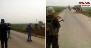 HASEKE – Kamışlı bölgesindeki Mşeyrfe köy ahalisi, Suriye Arap Ordusu kontrol noktasının desteğiyle, köyü uluslararası (M4) karayoluna doğru geçmeye çalışan Amerikan işgal güçlerine ait bir askeri konvoyla karşı karşıya geldi …