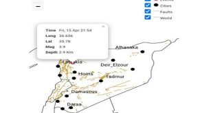 ŞAM – Halep’in güneybatısında Richter ölçeğine göre 3,9 büyüklüğünde bir deprem meydana geldi. Ulusal Deprem Merkezi yayınladığı ve SANA’nın bir nüshasını aldığı beyanda, yerel saate göre 9:54’te, Halep şehrinin 2,9 …