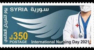ŞAM – Suriye Posta Kurumu, Uluslararası Hemşirelik Günü münasebetiyle yeni bir posta pulu yayınladı. Kurum yayınladığı ve SANA’nın nüshasını aldığı beyanda, pulun değerinin 350 Suriye Lirası olduğunu, bu pula sahiplenmek …