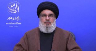 BEYRUT – Hizbullah Genel Sekreteri Seyyid Hasan Nasrullah, düşman İsrail’in en başından beri zamanla unutmaya bahse girdiği bir zamanda, Filistin davasının yeniden canlandığını belirtti. Seyyid Nasrullah, Uluslararası Kudüs Günü münasebetiyle …