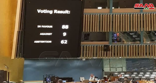 NEW YORK – Birleşmiş Milletler Genel Kurulu (BMGK) bugün yine, Suriye’nin işgal edilen Golan üzerindeki egemenliğine ve İsrail işgalinin buradaki tüm icraatlarının geçersiz ve batıl sayan oylamada çoğunlukla kabul etti. …