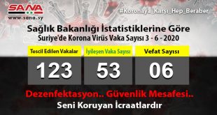 ŞAM – Sağlık Bakanlığı bugün, Suriye’de tescil edilen korona virüs vakalarından 3’ünün şifa bulduğunu böylece şifa bulan va sayısının 53’e yükseldiğini ilan etti. Bakanlık yayınladığı ve SANA’nın bir nüshasını aldığı …