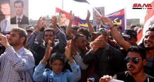 DEYREZZOR – SANA muhabiri Deyrezzor doğu kırsalındaki el Zebari Beldesi sakinleri, Suriye topraklarına yönelik Türk saldırganlığını protesto eden gösteri düzenlediklerini ve Suriye Arap Ordusunun zaferlerini de kutladıklarını dile getirdi.