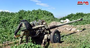 HAMA – Hama kırsalında ordu birliklerimiz İdlib’te gerginliği azaltma anlaşmasına ihlallerini ve güvenli bölgelere saldırılarını devam eden teröristlere karşı koyma operasyonlarını sürdürüyor. SANA muhabiri; ordu birliklerimizin Hama kırsalı kuzeyinde Tel …