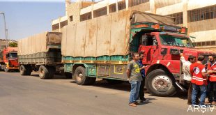 HALEP – Halep kırsalının kuzeyi Menbic ahalisine Suriye Kızılay Örgütü ve Birleşmiş Milletlerin denetimi altında dağıtılmak üzere bugün farklı tür gıda ve temel gereksinim maddelerinden ibaret bir insani yardım konvoyu …
