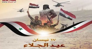 ŞAM – Fransız sömürgecisinin Suriye’den atılmasının yetmiş altıncı, Suriye Arap Ordusu’nun kahramanlığı, kurtuluşun torunları ve savaş sırasında anavatanın bayrak taşıyıcıları sayesinde başta Amerika Birleşik Devletleri liderliğindeki neo-Batı sömürgeci ülkeleri tarafından …