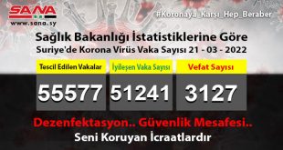 ŞAM – Sağlık Bakanlığı dün, Suriye’de yeni 19 korona vakası ile 55 şifa vakasının tesciledilirken tescil edilen vakalardan herhangi bir vefat vakasının tescil edilmediğini ilan etti. Bakanlık yayınladığı ve SANA’nın …