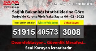 ŞAM – Sağlık Bakanlığı dün, yeni 89 koronavirüs vakasının tescil edildiğini, tescil edilen vakalardan 330’unun şifa bulduğunu, 4’ünün de vefat ettiğini ilan etti. Bakanlık yayınladığı ve SANA’nın nüshasını aldığı beyanda, …