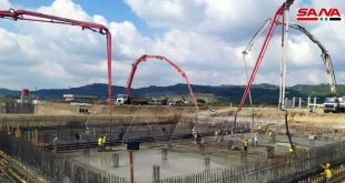 LAZKİYE – Lazkiye’nin kuzey kırsalındaki el Rastin elektrik santral projesinde ham su deposunun temeli olan en büyük üssün dökümüne başlandı. İstasyonun proje yöneticisi Mühendis Nazir Dennura SANA muhabirine açıklamasında, ilk …