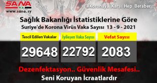 ŞAM – Sağlık Bakanlığı, yeni 157 koronavirüs vakasının tescil edildiğini, tescil edilen vakalardan 45’inin şifa bulduğunu, 7’sinin de vefat ettiğini ilan etti. Bakanlık yayınadığı ve SANA’nın nüshasını aldığı beyanda,Suriye’de tescil …
