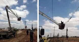 DERA – Dera Valiliği’ndeki Genel Elektrik Şirketine tabi atölyeler, Suriye Arap Ordusu birliklerinin bölgeye konuşlandırılmasının ardından Dera el Beled bölgesi, baraj yolu ve kamplara elektriğin yeniden getirilmesi için büyük çabalarla …