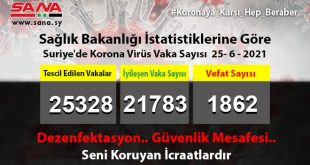 ŞAM – Sağlık Bakanlığı, yeni 41 koronavirüs vakasının tescil edildiğini, tescil edilen vakalardan 9’unun şifa bulduğunu, 3’ünün de vefat ettiğini ilan etti. Bakanlık yayınladığı ve SANA’nın nüshasını aldığı beyanda, Suriye’de …