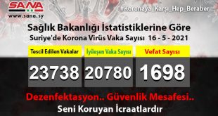 ŞAM – Sağlık Bakanlığı, yeni 50 koronavirüs vakasının tescil edildiğini, tescil edilen vakalardan 289’unun şifa bulduğunu, 6’sının da vefat ettiğini ilan etti. Bakanlık yayınladığı ve SANA’nın nüshasını aldığı beyanda, Suriye’de …