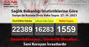 ŞAM – Sağlık Bakanlığı dün akşam Suriye’de yeni 124 koronavirüs vakasının kaydedildiğini, tescil edilen vakalardan 186’sının şifa bulduğunu 11 vakanın da vefat ettiğini ilan etti. Bakanlık yayınladığı beyanda,, Suriye’de tescil …