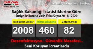 ŞAM – Sağlık Bakanlığı bugün, Suriye’de yeni 83 koronavirüs vakasının tescil edildiğini, 14 vakanın iyileştiğini ve 5 vakanın vefat ettiğini açıkladı. Bakanlığın bugün yayınladığı beyanda; Suriye’de bugüne kadar tescil edilen …