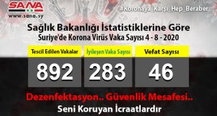 ŞAM – Sağlık Bakanlığı bugün, Suriye’de yeni 45 koronavirüs vakasının kaydedildiğini ve 10 vakanın şifa bulduğunu ilan etti. Bakanlık bugün yayınladığı ve SANA’nın bir nüshasını aldığı beyanda, Suriye’de tescil edilen …