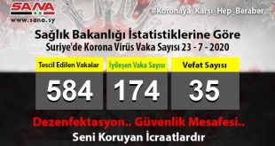 Şam – Sağlık Bakanlığı bugün 26 yeni koronavirüs vakasının tescil edildiğini belirterek, 9 vakanın şifa bulduğunu 3 vakanın da vefat ettiğini ilan etti. Bakanlık yayınladığı ve SANA’nın bir nüshasını aldığı …