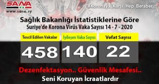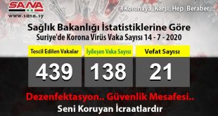 ŞAM – Sağlık Bakanlığ bugün, Suriye’de tescil edilen koronavirüs vakalardan birinin vefat ettiğini ve ayrıca yeni 19 vakanın tescil edildiğini açıkladı. Bakanlığın yayınladığı ve SANA’nın bir nüshasını aldığı beyanda; Suriye’de …