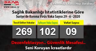 ŞAM – Sağlık Bakanlığı temas halinde olan şahıslardan 13 kişide koronavirüs tescil ediliğini böylece Suriye’de tescil edilen koronavirüs vakalarının 269’a yükseldiğini açıkladı. Bakanlık yayınladığı ve SANA’nın bir nüshasını aldığı beyanda, …