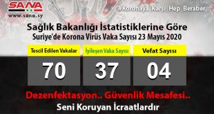 ŞAM – Sağlık Bakanlığı bugün Suriye’de tescil edilen vakalardan birinin şifa bulduğunu Küveyt’ten gelen yeni bir vakanın tescil edildiğini bir vakanın da vefat ettiğini ilan etti. Bakanlık yayınladığı ve SANA’nın …