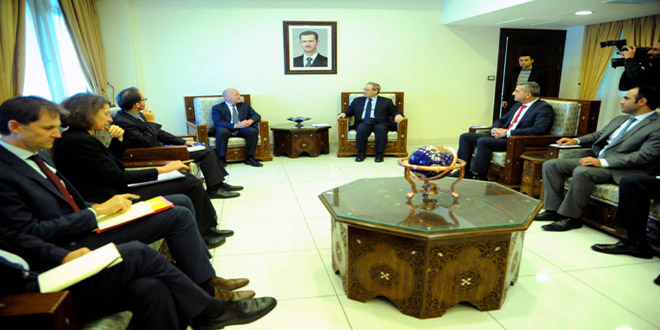 ŞAM – Dışişleri ve Gurbetçiler Bakanı Yardımcısı Faysal el Mikdat; İnsani Yardım İçin İsviçre Federal Komisyonu Üyesi ve İsviçre Dışişleri Bakanlığında İnsani Yardım Birliği Başkanı Manuel Bisler ve ona eşlik eden heyeti ağırladı.
