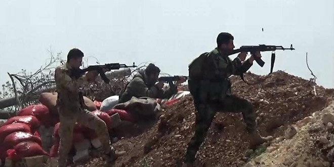 SANA’nın Homs muhabiri; topçu birliklerimizin Homs Kentinin yaklaşık 25 km kuzeyine düşen Havş Haccu Bölgesinde Kaide Örgütünün Suriye kolu Nusra Cephesine tabi bir toplanma merkezini yoğun ateşe tutuklarını ifade etti. Muhabir; operasyonda aralarında tehlikeli isimlerin bulunduğu 5 teröristin öldürülüp ağır makineli silahla donatılmış bir 4X4 çeker aracın da yüküyle birlikte tamamen imha edildiğine dikkat çekti.