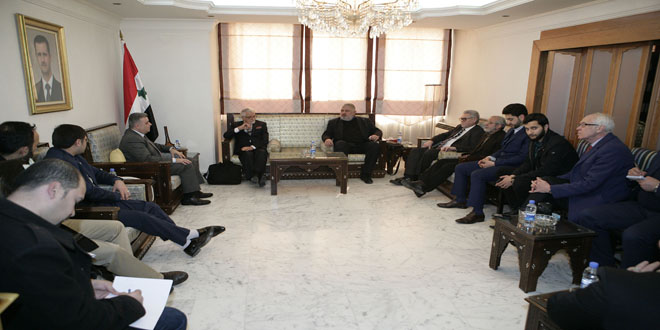 ŞAM – Enformasyon Bakanı Muhammed Ramiz Tercüman Lübnan’da Uluslararası Meraya Dergisinin ‘Suriye Zafer Kazanıyor’ başlığı altında yayınladığı özel sayısına katılanlardan bir heyetle görüştü. Heyet üyeleri Suriye’nin terör ve destekçilerine karşı şanlı zaferin yolunda sağlam adımlarla ilerlediğini kaydetti.