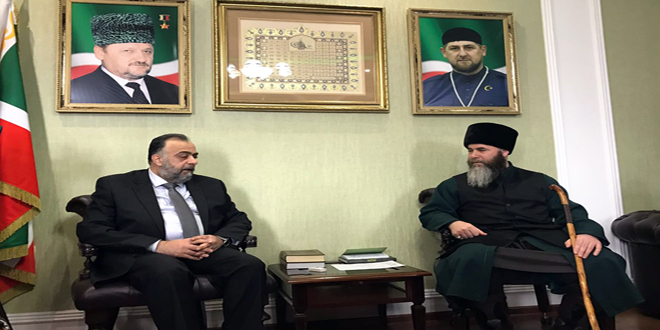 Vakıflar Bakanı Seyit başkent Grozni’deki Büyük Camide Suriye’nin maruz kaldığı muhtelif yönlü evrensel savaş ve gerçeklerine ışık tuttu. Çeçen müftüsü ve önde gelen din adamlarının yanı sıra Çeçenistan’ın her yerinden cami imamları ve hatiplere ilaveten geniş öğrenci kitlesinin katıldıkları buluşmada Bakan Seyit; Suriye’nin ordusu ve halkıyla omuz omuza teröre karşı verdiği şanlı mücadeleye de ışık tuttu.
