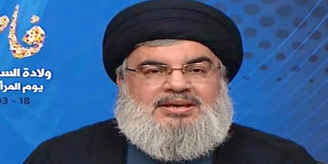 IŞİD’in Suriye’de hezimete uğratılmasının, İsrail’in bölge ve halklarına yönelik planlarını çökertmek olduğuna dikkat çeken Nasrullah; Suriye’de terör örgütlerin yok olma yolunda olduklarını, bunun sadece zaman meselesi olduğunun altını çizdi.