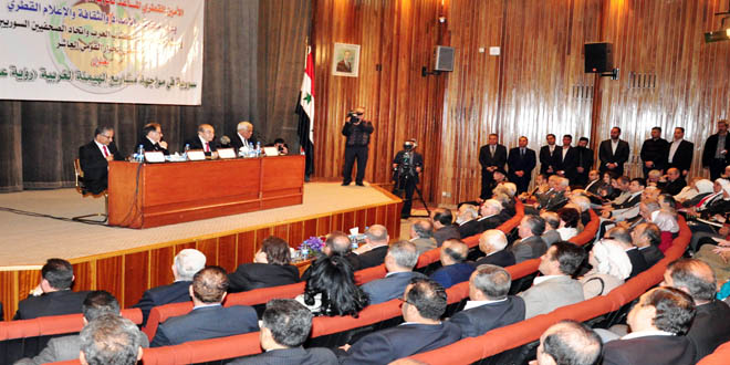 “Suriye’nin Batılı Hegemonya Planlarına Karşı Mücadelesinde Arap Vizyonu” sloganı altında düzenlenen forumda; Suriye ve halkına yönelik yürütülen muhtelif yönlü ve uluslar arası savaşta gerçeklerin çarpıtıldığına dikkat çekildi. IŞİD ve Nusra Cephesini edat olarak kullanan belli başlı devletlerin son olarak propaganda ve siyasi saldırılarını tırmandırdıklarına dikkat çekilen forumda; ABD’nin son olarak Suriye’ye bulunduğu saldırının IŞİD, Nusra Cephesi ve muhtelif isimler altında faaliyet gösteren diğer terör örgütleri ile Batılı devletler ve İsrail arasındaki bağlantıları net bir şekilde ortaya koyduğunun altı çizildi.