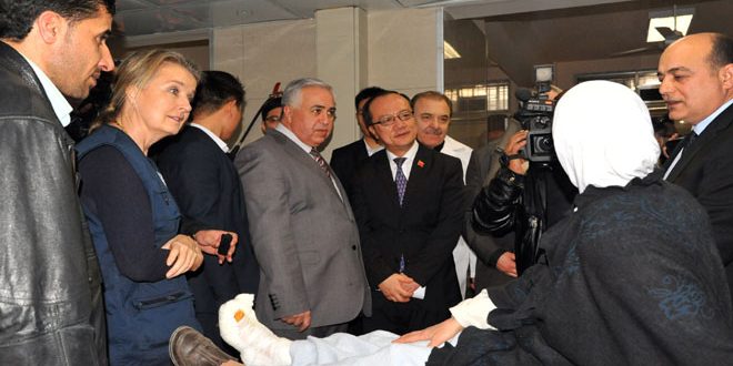 Çin’in Şam Büyükelçisi Muvasat Hastanesine saha ziyaretinde bulundu
