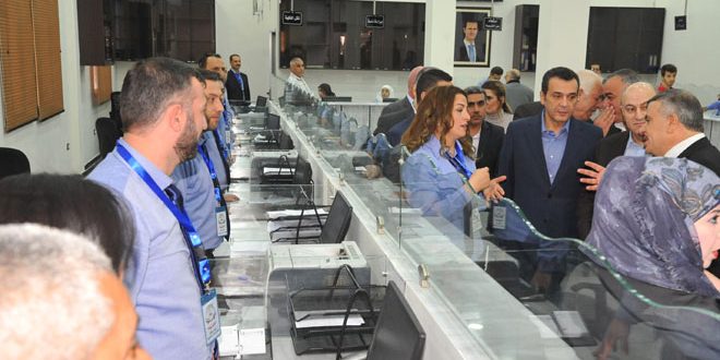 Elektrik Bakanı vatandaşlara hizmet merkezinin açılışını yaparken Teşrin Elektrik İstasyonunda durumları inceledi