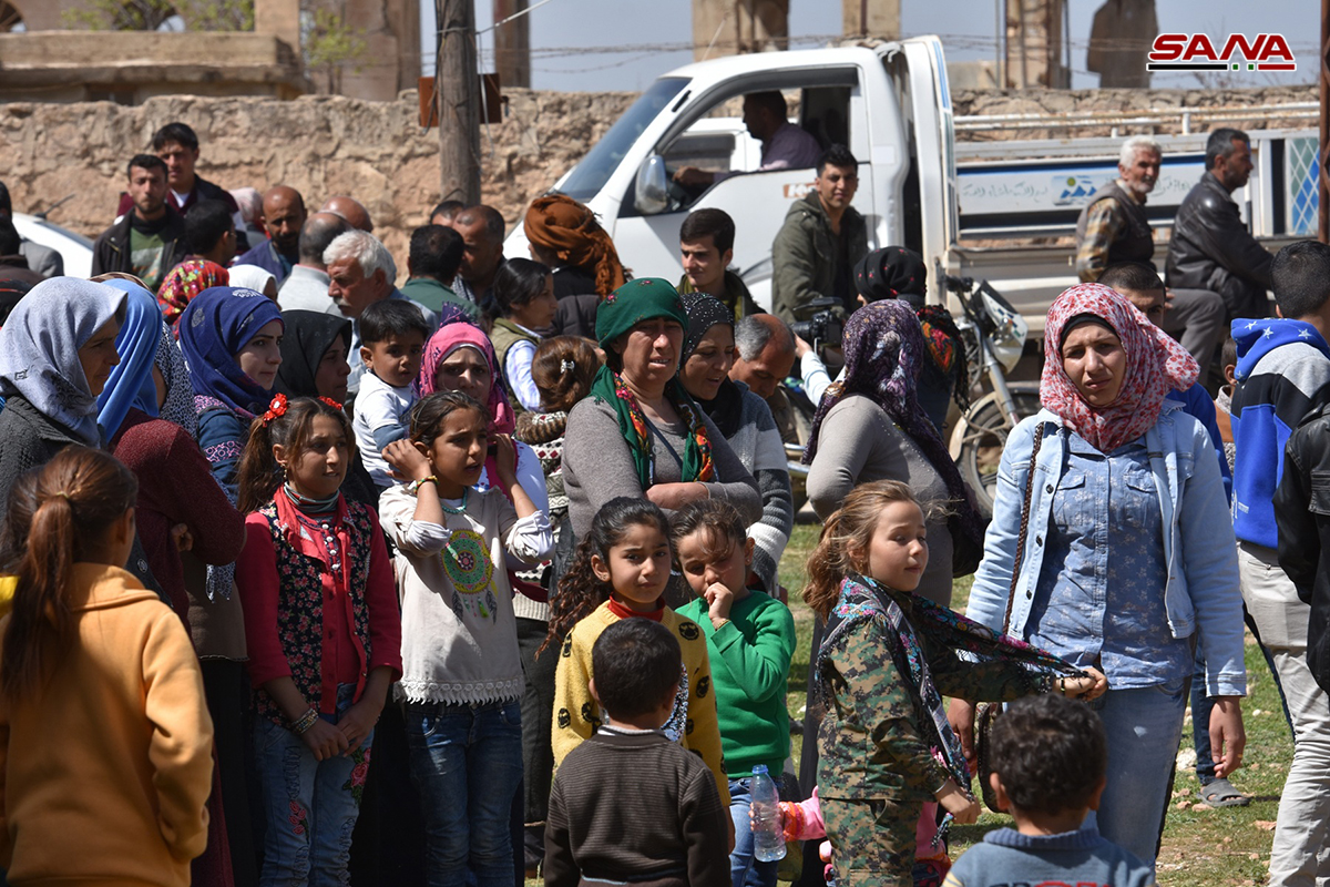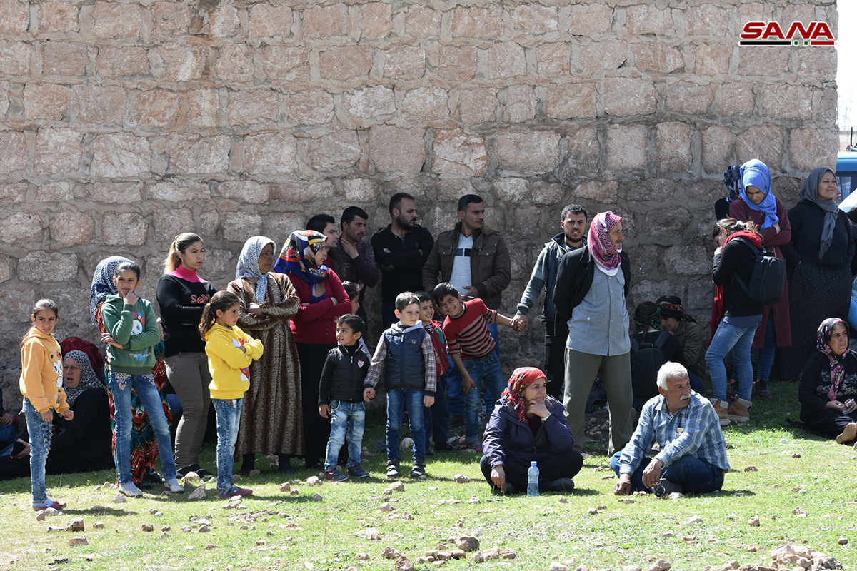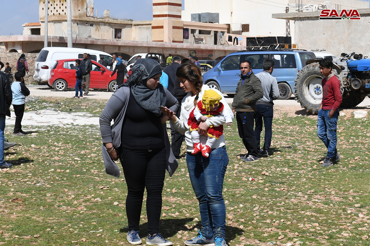 Afrin ahalisi acılarına rağmen Halep kırsalı Fafin Beldesinin ana meydanında toplanıp her yıl coşkuyla kutladıkları bayramı buruk bir şekilde kutladı.