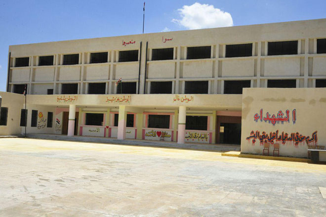 Deyrezzor kırsalında da hizmet ve kalkınsal durumları inceleyen bakanlar kurulu heyeti Bğayliye Beldesinde bir okulu ziyaret edip incelemelerde bulundu.