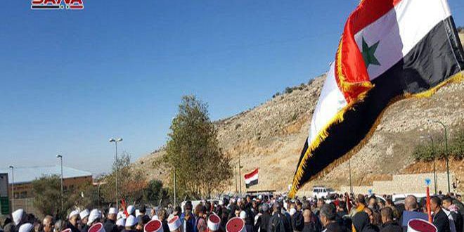 GOLAN – Suriye’nin İsrail işgali altındaki Golan topraklarında yaşayan yurttaşlarımız; başta son olarak tarım alanında dayatmaya çalıştığı rüzgar türbinleri projesi olmak üzere işgalci İsrail otoritelerinin Golan’ı yahudileştirme ve vatandaşlarını tehcir ettirmeye yönelik bütün planlarını reddettiklerini bir kez daha yinelediler.