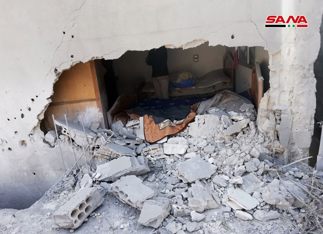 Lazkiye SANA muhabiri, kuzey kırsalında yayılan terörist grupların fırlattıkları bir roketin Kunaynıs bölgesine düştüğünü ve bir sivil vatandaşın yaralanması, olay yerinde de maddi zararların meydana geldiğini söyledi.