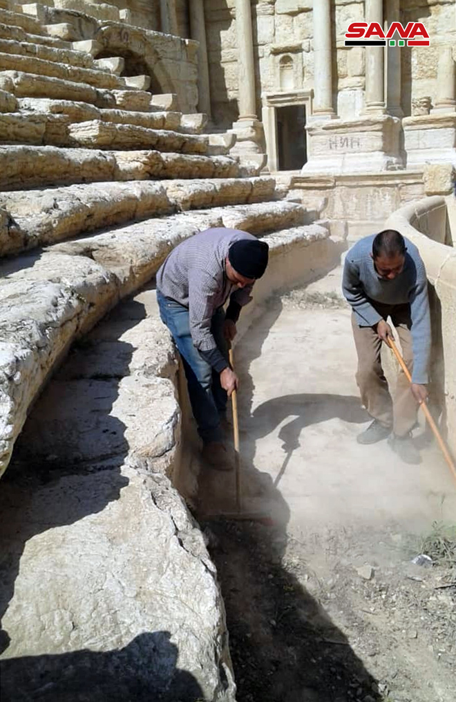 Muhabir, atölyelerin sanat festivalleri ve konserlerinin düzenlendiği tarihi tiyatrodaki enkazı kaldırmaya ve temizlemeye başladıklarını, ve bu IŞİD terörünün bu tarihi kente ulaşmadan önceki doğal haline dönüştürme çalışmalarını tamamlayana kadar süreceğini söyledi.