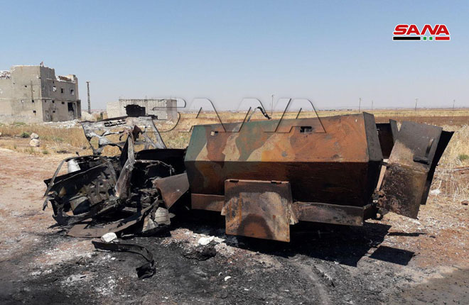 HAMA – SANA kamerası Hama kuzeybatı kırsalı el Cibeyn Beldesinin teröristlerden kurtarılışı ardından Suriye Arap Ordusu kahramanlarına refakat ederek, teröristlerin içindeki zırhlı ve tank araçlarını belgeledi.