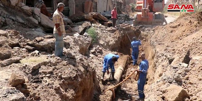 SANA muhabirine yaptığı açıklamalarda İl Su Müdürü Muaz Alluş; Hamidiye Semtine su temin eden ana su boru hattının yeniden döşenmesi ardından ekiplerin semtteki alt şebekeyi de onarım çalışmalarına başladıklarını belirtti.