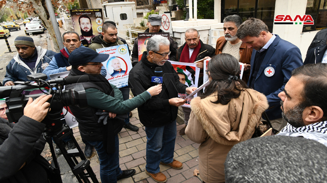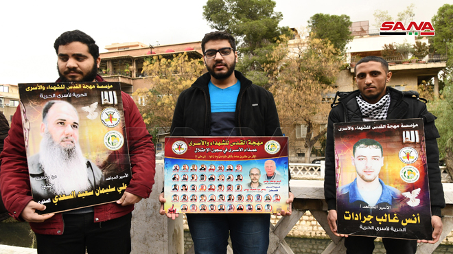 ŞAM – Filistin Halk Kurtuluş Cephesinde İsrail tutukevlerinde bulunan esirlerle dayanışma ve onları destekleme komitesi bugün başkent Şam’daki Uluslararası Kızılhaç Örgütünün ofisi önünde açlık grevinde bulunan esirlerle dayanışma eylemi gerçekleştirdi.