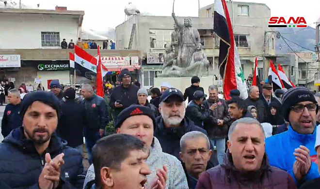 İşgal edilen Golan’ın Mecdel Şems Beldesi sahasında bugün düzenlenen protesto gösterisine katılanlar, topraklarına bağlılıklarını, bir zerre toprağından vazgeçmeyeceklerini ve karşılığı ne olursa olsun topraklarını savunacaklarını bir kez daha yinelediler.