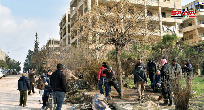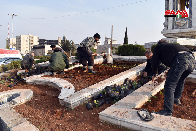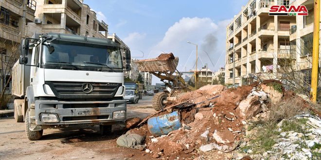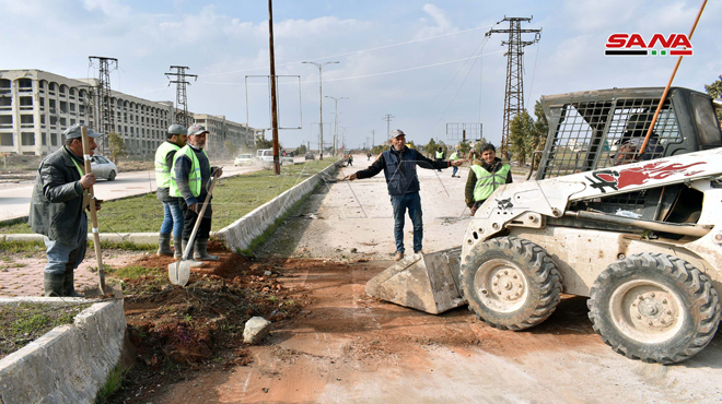 SANA kamerası Halep’in batısındaki Devvar Kurtuba Meydanı’ndan Cemiyet el Zehra’ya doğru giden yollarda Büyükşehir Belediye ekipleri tarafından gerçekleştiren onarım çalışmalarına yerel şirketlerin da gönüllü olarak katıldıklarını kaydetti.