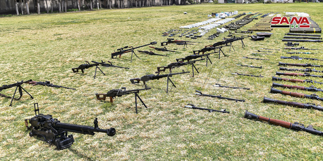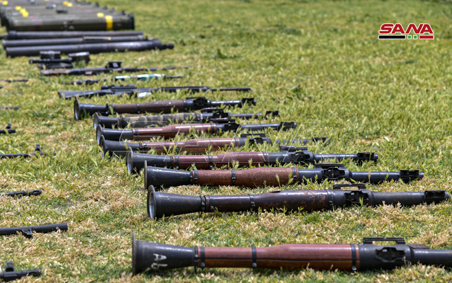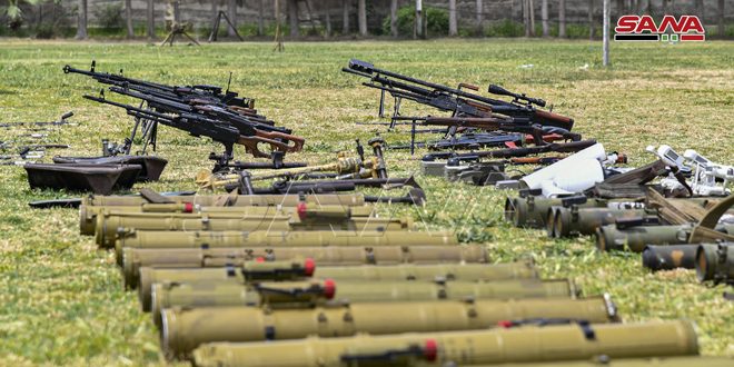 Yetkili cihette bir kaynak SANA muhabirine açıklamasında, yetkili cihetlerin ahali işbirliğiyle, aralarında “TAV füzeleri, omuzda taşınabilir füzeler, Antizırh füzler, aralarında (duşka( türü de olan orta ve ağır hafif otomatik silahlar, batı menşeli makineli tüfekler, RPG roketatarların da bulunduğu silah ve cephane yanı sıraçok sayıda RPG roketleri, havan mermisi, havan atış üsleri, uzaktan kumandalı keşif uçağı, gelişmiş gözlem kameraları, iletişim cihazları ve büyük miktarda mühimmat da bulundu.